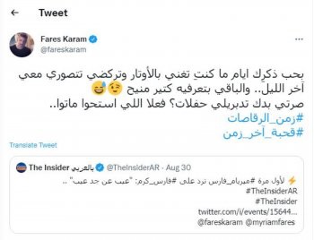 وكتب فارس كرم: "بحب ذكرِك ايام ما كنتِ تغني بالأوتار وتركضي تتصوري معي آخر الليل.. والباقي بتعرفيه كتير منيح، صرتي بدك تدبريلي حفلات؟ فعلا اللي استحوا ماتوا.."
