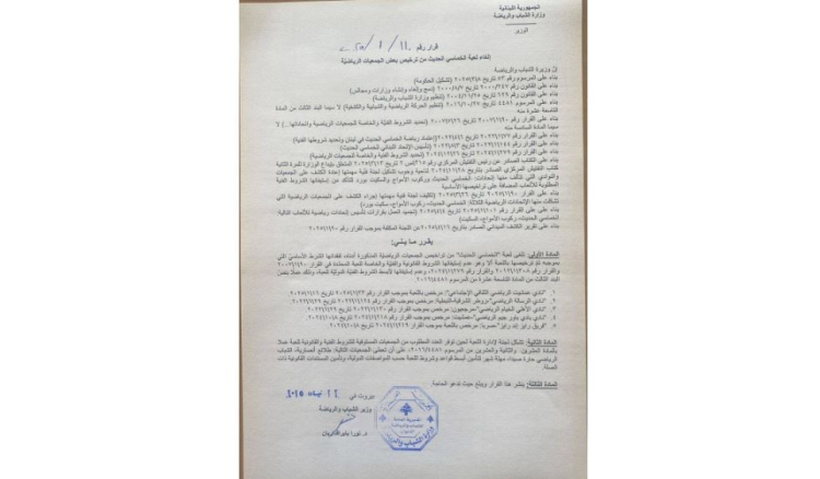عمم الامين العام للجنة الاولمبية اللبنانية جودت شاكر البيان التالي: "اصدرت معالي وزيرة الشباب والرياضة الدكتورة نورا بيراقداريان ثلاثة قرارات بتاريخ الثلاثاء 22 نيسان 2025، وفي القرارات الغاء لعبة "السكيت بورد" ولعبة "الخماسي الحديث" ولعبة "ركوب الموج" من تراخيص الجمعيات الرياضية لفقدانها الشرط الاساسي الذي تم بموجبه ترخيص الألعاب الثلاث وعدم استيفائها الشروط القانونية والفنية والخاصة بها، وقرّرت تشكيل لجنة لادارة كل لعبة".