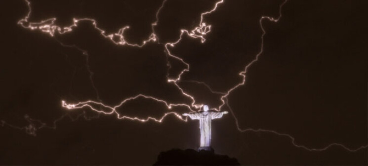 صاعقة تصيب تمثال المسيح الفادي في البرازيل