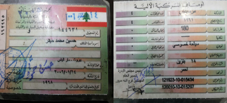وارفق حيدر بيانه بنسخة عن ملكية السيارة خاصته، تتضمن المعلومات الكاملة.