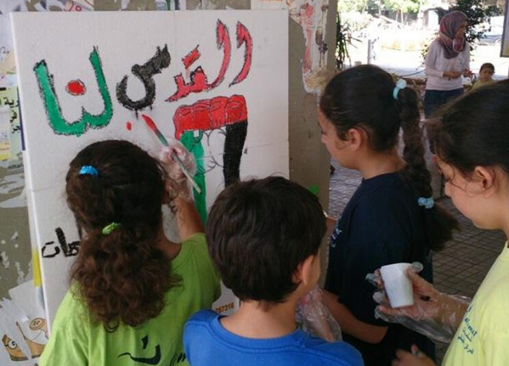 رسوم جدارية في بئر العبد لتلاميذ جمعية "كلمات" تحية لإطفال غزة