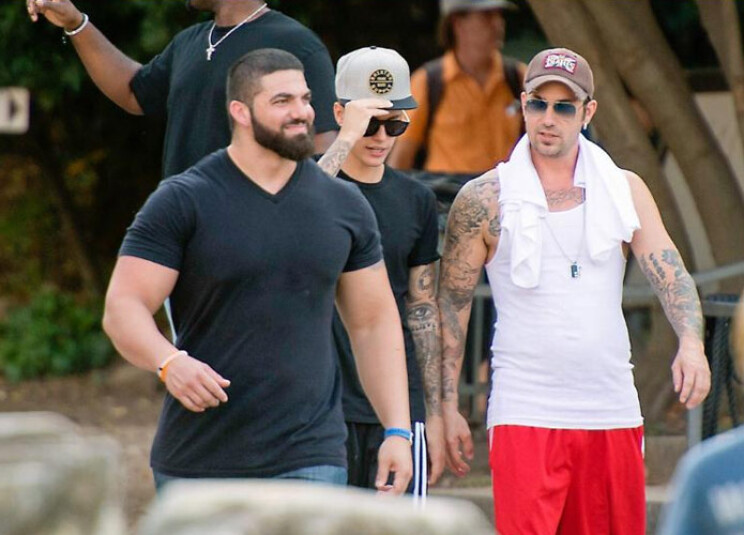 وكان برفقة جاستين والده جيريمي وأحيط بعدد من المعجبين.