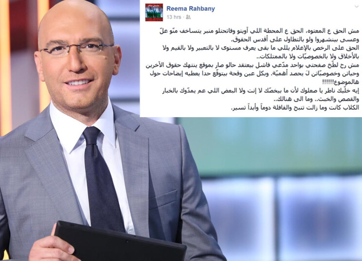 ومن دون أن تسمّي زافين أو البرنامج كتبت ريما: «مش الحق ع المعتوه، الحق ع المحطة اللي آويتو وفاتحتلو منبر يتساخف منّو. علّ وعسى بينشهروا ولو بالتطاول على أقدس الحقوق».