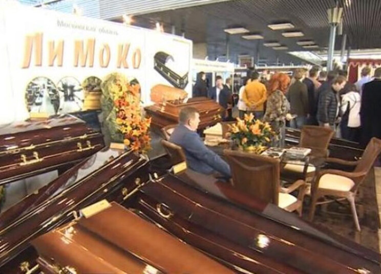 أقيم معرض الخدمات الجنائزية "نيكروبوليس 2014" في أحد جناحات معرض المنجزات الاقتصادية في العاصمة الروسية موسكو، ويقدم المعرض نطاقا واسعا من الخدمات والمنتجات المحلية والدولية لمتعهدي الدفن وفي مقدمتها النعوش من كل المقاسات والأشكال والأنواع.