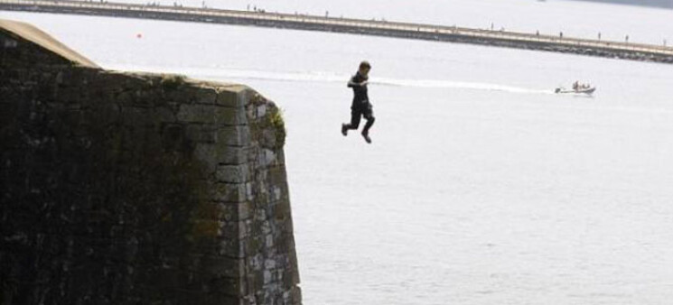 خاطر فتى بحياته عندما قفز من على علو 65 قدما في البحر ليشارك في موجة جنون قاتل تجتاح انكلترا.فقد قذف الشاب نفسه خارج الجدار في ميناء كوف الرجل الميت، بليموث، بينما كان يشارك في الرياضة القاتلة التي أودت بحياة 19 شخصا على الاقل في السنوات السبع الماضية.وعلى الرغم من سقوط عدد من القتلى في هذه الأعمال المثيرة والمحفوفة بالمخاطر، فقد تهافت عدد من البالغين والأطفال على أخذ زمام المبادرة من جدار الميناء، في تحد للافتات تحذر من "خطر الموت".