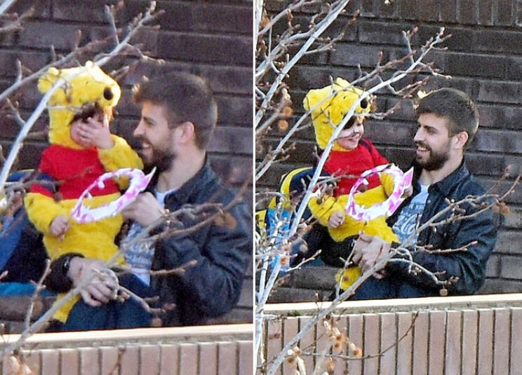 وكان بيكيه برفقة إبنه من شاكيرا ميلان البالغ من العمر سنتين، والأخير كان يرتدي شخصية ديزني "ويني الدبدوب".