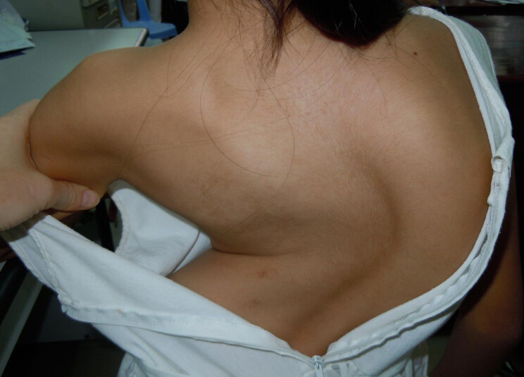 - إذا لم تكن نتوءات الفقرات Vertèbres dorsales من الرأس إلى الأسفل في خط مستقيم، وندرك ذلك بمجرد تمرير اصابعنا على هذه النتوءات بشكل عامودي.