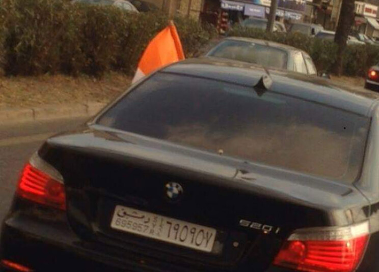 واللافت في الصورة، ان السيارة تحمل لوحة سورية ويرفع عليها علم "التيار".