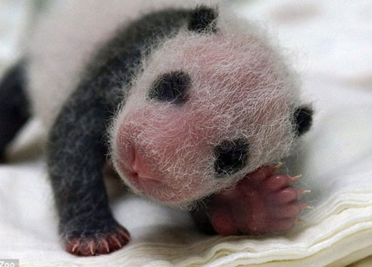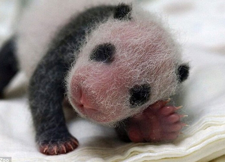 وعرضت حديقة الحيوان القومية لقطات فيديو مدتها 15 ثانية ويظهر فيها أحد العاملين وهو يضع قفازا ويمسك بصغير الباندا الذي يغلب على جسده اللون الوردي. وظهر على جسد الصغير بعض الفرو الأبيض وبصيص للهالة السوداء حول العينين التي تميز دب الباندا.