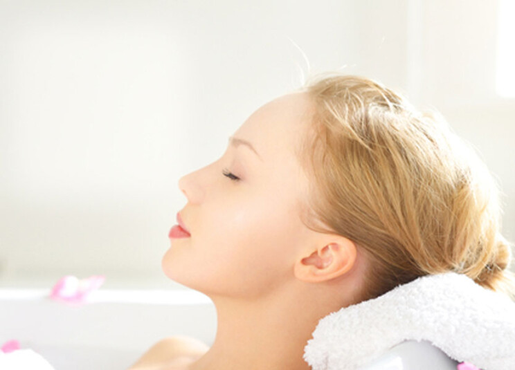 ضعي ربع فنجان من أوراق النعناع الجافة أو الطازجة، ربع فنجان من الروزماري، ربع فنجان من البابونج وربع فنجان من اللافندر في قطعة من الشاش وتغمس في حوض الاستحمام المملوء بالماء الدافئ لمدة نصف ساعة ثم استرخي في الماء لمدة نصف ساعة أخرى، ودلكي جسمك بخليط الأعشاب في حركات دائرية لمدة 5 دقائق، ثم اشطفيه بالماء البارد.