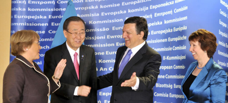دعا الامين العام للامم المتحدة بان كي مون الحكومة السورية الى ضمان حرية حركة كاملة للمراقبين الاجانب في سوريا، مقترحًا توفير الاتحاد الاوروبي مروحيات او طائرات لبعثة مراقبة وقف اطلاق النار المقبلة في البلاد.