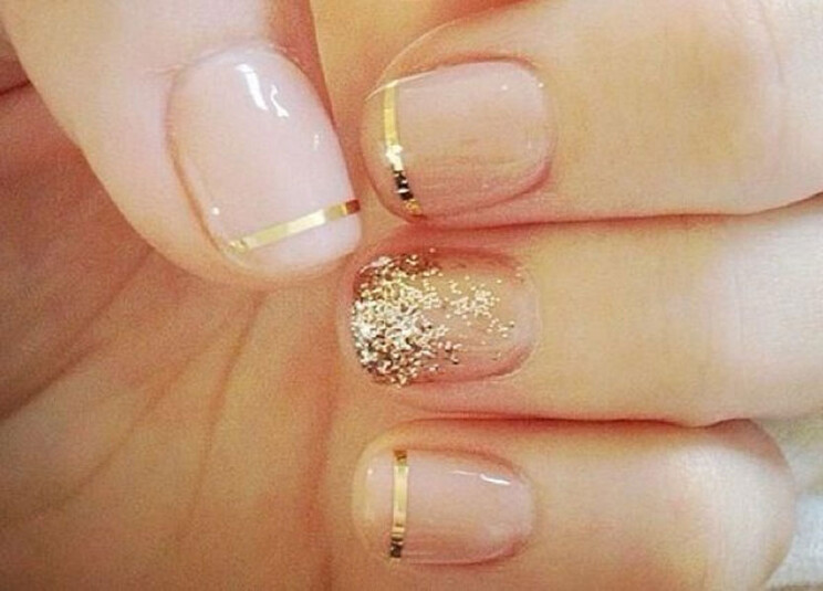 اعتمدي طلاء الأظافر البرّاق، ثم اتركي إصبعاً أو اثنين، وطبّقي عليهما خطوطاً عريضة أو رفيعة من طلاء الأظافر الذهبي .