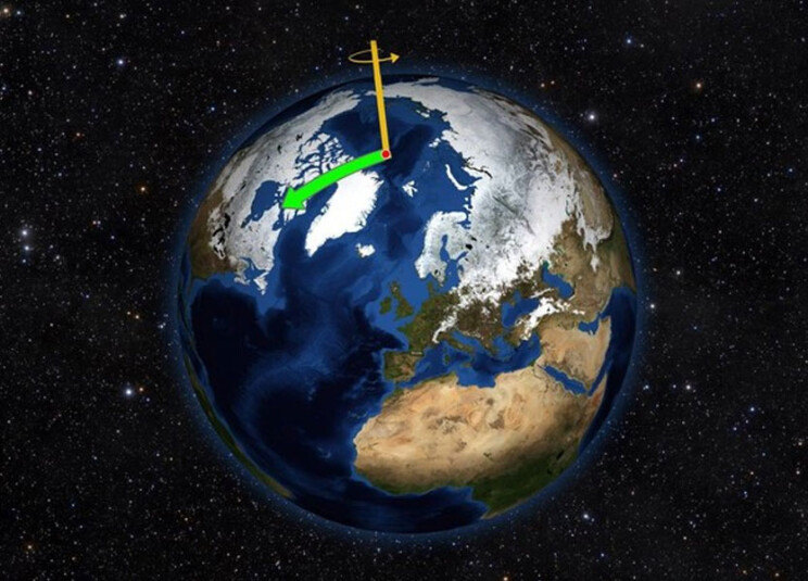 ووفقا لمقالة نشرتها مجلة Science Advances فإن الاحتباس الحراري سبّب انحراف المحور الأرضي باتجاه الشرق منذ العام 2000.