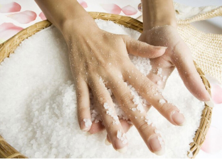 قومي بإضافة ثلث كوب من ملح البحر إلى حوض استحمام ملئ بالماء الدافئ واسترخي فيه من ربع إلى نصف ساعة؛ فالملح سيساعدك في التخلص من الأوساخ والسموم الموجودة بالبشرة، كما أنه سيعمل على تطهير الجسم والاحتفاظ برطوبة البشرة.