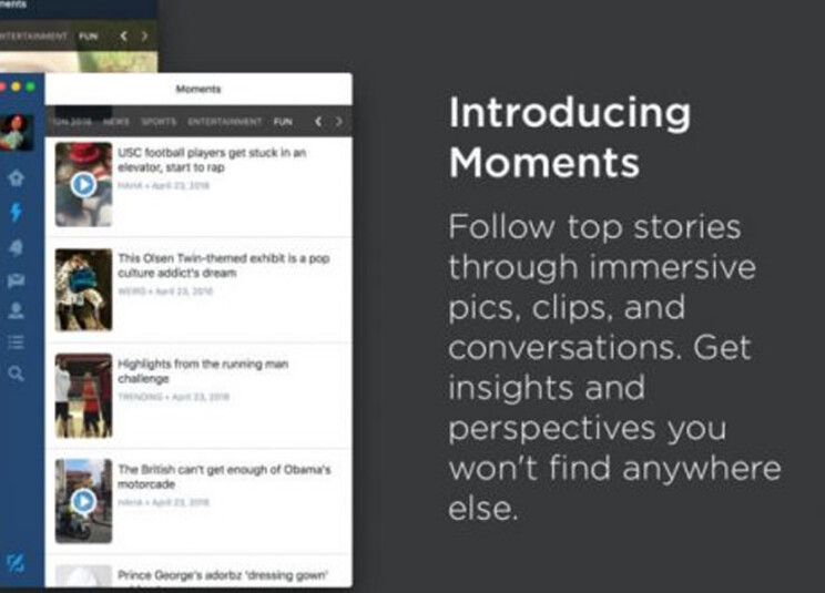 ويضيف التحديث الأخير تبويب اللحظات Moments إلى تطبيق تويتر على أجهزة ماك Mac، والموجود مسبقاً في نسخة الهواتف الجوالة ومتصفح الويب، حيث تم إطلاقه للمرة الأولى في شهر تشرين الأول الماضي، ويقوم التبويب بعرض أهم الأحداث التي تجري في الوقت الحالي بطريقة تسهّل على المغردين متابعتها وقرائتها.