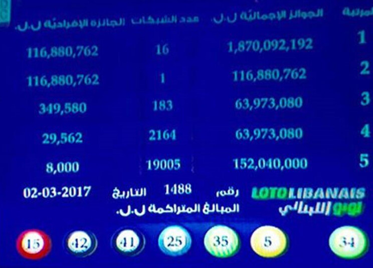 فازت 16 شبكة بجائزة المرتبة الأولى في سحب اللوتو اللبناني رقم 1488.