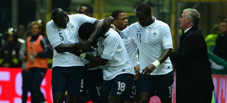 وكان آخر فوز للمنتخب الفرنسي على مضيفه الإيطالي في عام 1994. وافتتح ستيفان شعراوي التسجيل للمنتخب الإيطالي في مباراة اليوم في الدقيقة 35 ثم أدرك ماثيو فالبوينا التعادل للفريق الفرنسي في الدقيقة 37 قبل أن يضيف بافيتيمبي غوميز هدف الفوز 2-1 لفرنسا في الدقيقة 68 . سيطر المنتخب الإيطالي على مجريات اللعب في الدقائق الأولى وتفوق في الجانب الهجومي، بحثا عن هدف مبكر يربك به حسابات منافسه.وجاءت أول فرصة في الدقيقة السابعة وكانت من نصيب المهاجم الإيطالي ماريو بالوتيللي حيث سدد كرة صاروخية من خارج منطقة الجزاء لكنها مرت فوق العارضة. وهدد بالوتيللي المرمى الفرنسي مجددا في الدقيقة العاشرة حيث هيأ ستيفان شعراوي الكرة له وسددها بقوة من خارج منطقة الجزاء لكنها اصطدمت بالعارضة. وبمرور أول عشر دقائق من المباراة بدأ المنتخب الفرنسي محاولاته للضغط الهجومي على منافسه لكن المنتخب الإيطالي توخى الحذر الدفاعي الشديد من خلال تضييق المسافات كما فرض رقابة لصيقة على النجم فرانك ريبيري الذي أبدى نشاطا ملحوظا في صناعة الهجمات.
