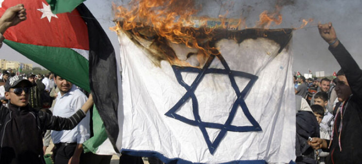 وهتف المتظاهرون ومعظمهم من البوسنيين مع عدد قليل من الطلبة ذوي الاصول العربية والتركية "اسرائيل، ارهابيون، صهاينة، ارهابيون".