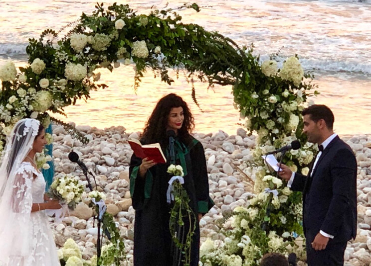 انتشرت على مواقع التواصل الإجتماعي صور تظهر الشاعرة والكاتبة جمانة حدّاد وهي تحيي مراسم زواج مدني على شاطئ صور.