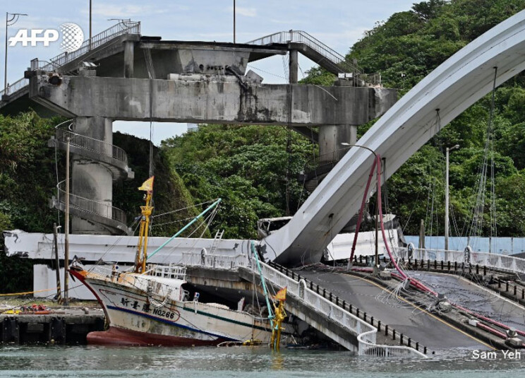 وأظهرت صور لكاميرات المراقبة لحظة وقوع الجسر البالغ طوله 140 متراً في نانفانغو على الساحل الشرقي لتايوان.