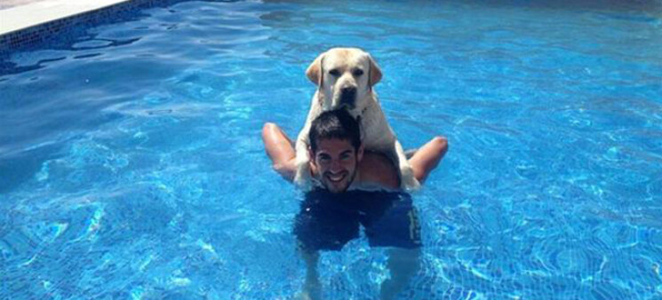 حيث نشر إيسكو على صحفته على "تويتر" صورة له مع كلبه في المسبح الخاص بمنزله.
