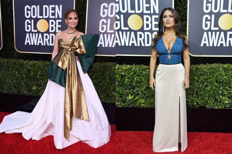 المفاجأة الكبرى كانت الممثلة سلمى حايك من أصول لبنانية، التي أطلّت على سجادة الغولدن غلوب بفستان غوتشي طويل. عدا عن أن الفستان كان عادياً بالنسبة لحفل ضخم، لا شكّ أنّه كان مبتذلاً بعض الشيء وقد يعتبره البعض جريئاً، لكن حتماً لا يليق بها. مع فتحة الصدر الواسعة وقصّته التي بدت ضيّقة على حايك، لم تبد إطلالتها مريحة أو مثيرة للإعجاب، للأسف. اعتمدت سلمى الشعر المموج المنسدل على الأكتاف مع مكياج خفيف وأحمر شفاه بألوان النيود.