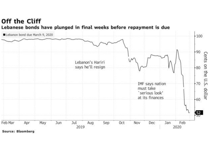 كما أنّ التقييم الذي تمنحه أي مؤسسة لدولة، يظلّ مرجعاً عند تقييم سندات الخزينة بالعملة الأجنبية للبلد المعني، والمخاطرة في الاستثمار فيها (السندات)، والظروف الاقتصادية العامة والتغييرات التنظيمية والاضطرابات السياسية المؤثرة بالمناخ الاستثماري...وتبيّن توازي تطوّر أسعار سندات لبنان مع مجمل هذه العوامل السياسية والاقتصادية في هذا الرسم البياني لوكالة «بلومبرغ».