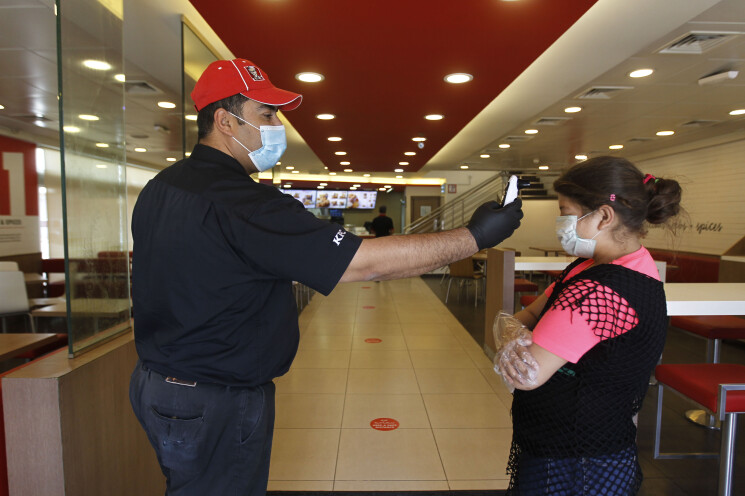 • التأكّد من أنّ أي شخص يدخل إلى المطعم أو المقهى بما في ذلك الموظفين والزبائن والمقاولين يخضعون جميعاً لفحص درجة الحرارة والتحقق منه.