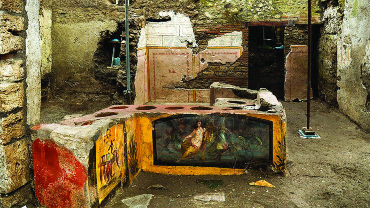 إكتشف علماء الآثار في بومبي، المدينة الإيطالية الأثرية المدفونة في ثوران بركاني وقع عام 79 للميلاد، متجراً لبيع الأطعمة والمشروبات الساخنة للمارة. وعثر العلماء على آثار، تعود لما يقرب من 2000 عام، لطعام في بعض الجرار العميقة التي تحتوي على طعام ساخن، والتي كان صاحب المتجر يقدّمها على منضدة من الجص فيها ثقوب دائرية. وكانت واجهة المنضدة مزينة بلوحات جدارية ذات ألوان زاهية، بعضها فيه صور حيوانات وطيور، كانت جزءاً من مكوّنات الطعام المباع، منها دجاج وبط. كما عثر علماء الآثار على آثار لحوم وأسماك وقواقع ولحم بقر في الحاويات، بالإضافة إلى وعاء شراب برونزي مزخرف، يُعرف بإسم «باتيرا»، وأوانٍ خزفية تُستخدم لطهي الحساء وقوارير وغيرها.
