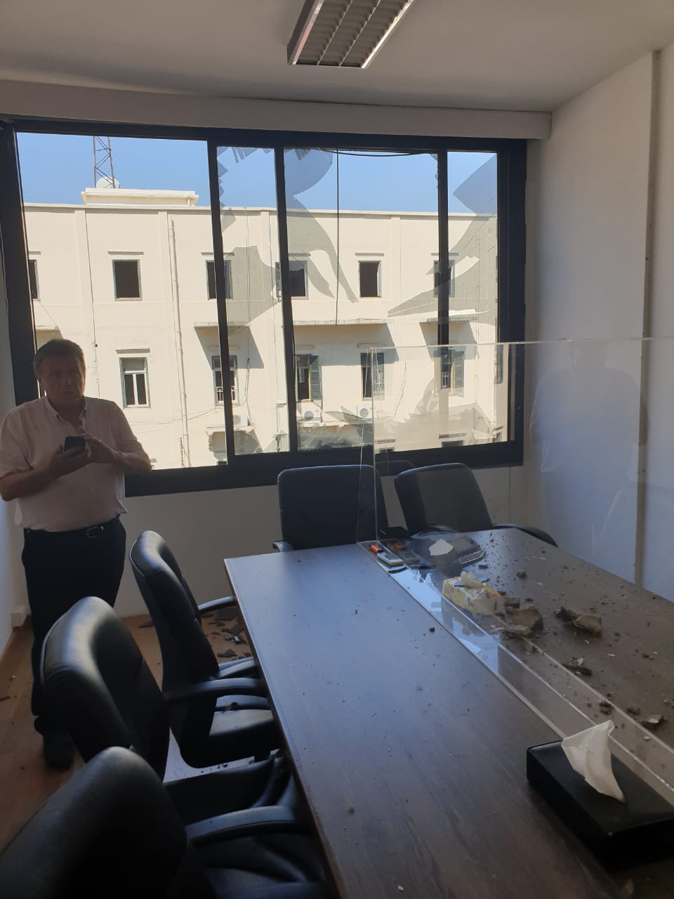 بالصور- إنفجار داخل مكتب المحامي صخر الهاشم
