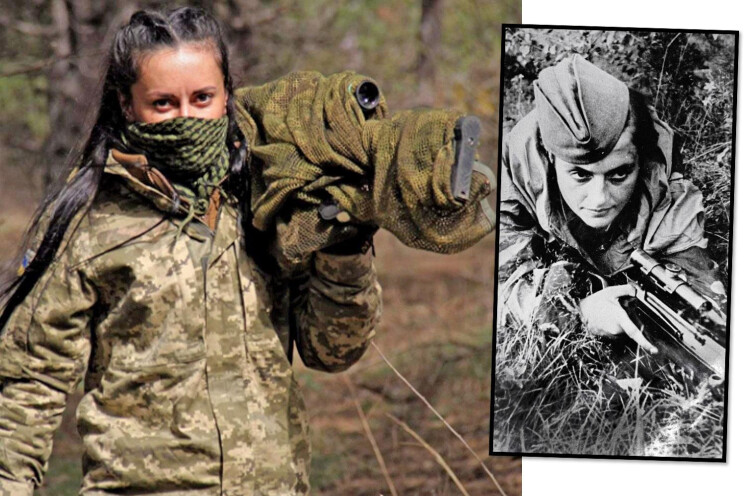 وقارن ناشطون أوكرانيون على المواقع الإجتماعية هذه المرأة بـ»القناصة الأسطورية» ليودميلا بافليشنكو، وهي أوكرانية كانت تلقّب بـ»سيدة الموت»، بعد أن قتلت 309 نازيين في الحرب العالمية الثانية. ويصف البعض بافليشنكو بأنّها «أنجح قنّاصة على الإطلاق»، بعدما حصلت على جائزة «بطلة الإتحاد السوفييتي»، وظهرت على الطوابع البريدية. كما تمّ تصوير فيلم روائي طويل عنها في عام 2015.