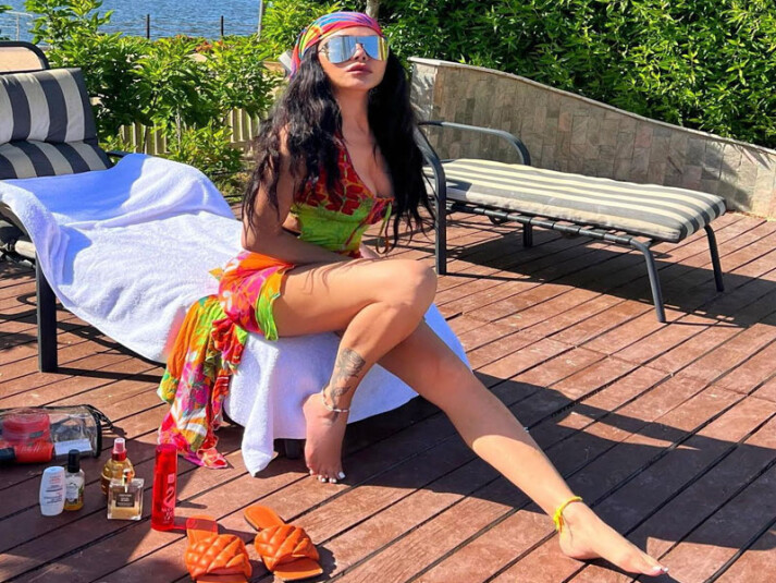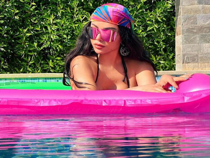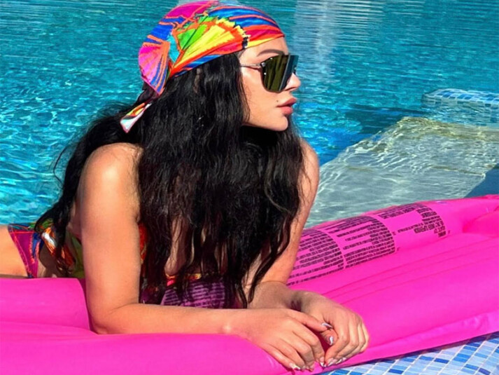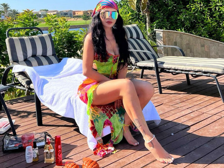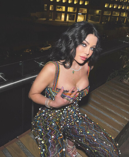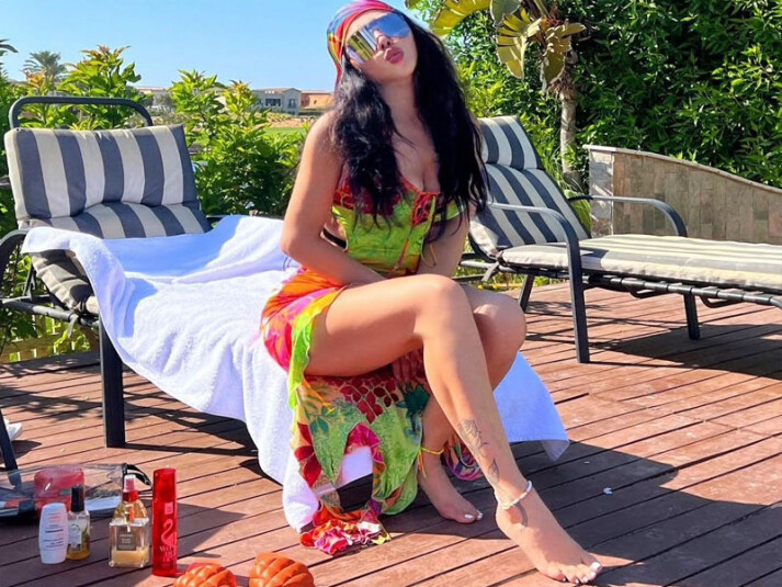 وظهرت هيفاء وهبي في الصورة المتداولة على منصات التواصل من حوض السباحة وهي ترتدي مايوه باللون الأخضر والفوشيا قد اظهر مفاتن جسمها وأنوثتها الطاغية، مع ارتدائها لنظارة شمسية سوداء قد أخفت وجهها.