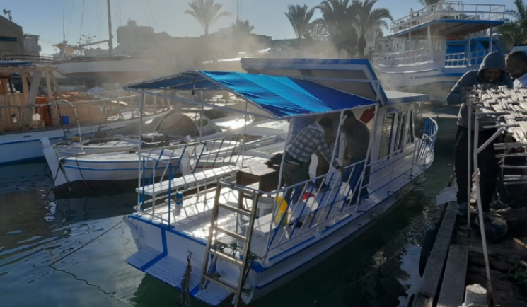 بالصورة- حريق داخل مركب سياحي في ميناء صور