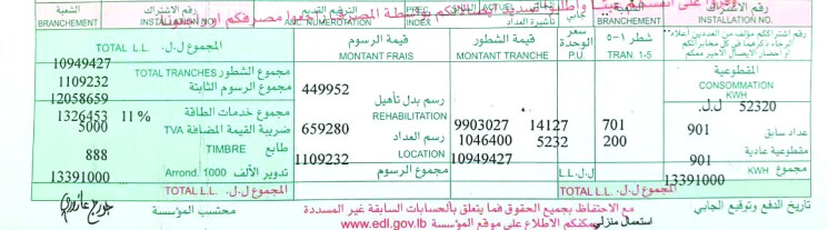 بدأت مؤسسة كهرباء لبنان في إصدار فواتيرها وفق التسعيرة الجديدة، والتي ستُحتسب وفق دولار صيرفة بلاس. وإصدار الفواتير الجديدة الذي بدأ الاسبوع الماضي سيتوسّع تباعًا ليشمل كل المناطق.