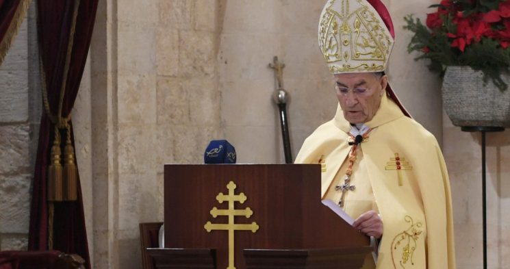 بعد الانجيل المقدس، ألقى الراعي عظة بعنوان: "عزم يوسف أن يطلّق مريم سرًّا... فتراءى له ملاك الربّ في الحلم"، قال خلالها: "نجد في شخص مريم ويوسف النموذج في الإصغاء الخاشع إلى كلام الله، والإستعداد المطلق للعمل به، والنموذج في الطاعة بتنفيذ إرادة الله، ووصاياه ورسومه، تنفيذًا أمينًا؛ والنموذج في خدمة تدبير الله الخلاصيّ، وخدمة رسالة المسيح لخلاص العالم... هذا الكلام ليس محصورًا بفئة من الناس، بل هو موجّه إلى كلّ إنسان، ولا سيما إلى الذين يتعاطون الشأن العام، والمسؤوليّة السياسيّة والمدنيّة. فهؤلاء إذا وُلد المسيح في قلوبهم، تغيّرت أفكارهم ونواياهم ومشاعرهم نحو كلّ ما هو حقّ وخير وجمال، يؤمّن الخير العام في الدولة والمجتمع. وعليه نودّ أن نشكر الله معكم على أنّه جنّب لبنان بالأمس خطر أزمة سياسيّة وأمنيّة، بالقرار الذي اتّخذه مجلس النواب إذ مدّد لقائد الجيش وقادة الأجهزة الأمنيّة لمدّة سنة. هكذا ظهرت الإرادة الحسنة التي ترفّعت عن المصالح الشخصيّة والفئويّة، وتطلّعت حصرًا إلى "المصلحة الوطنيّة العليا" المعروفة قانونًا ودوليًّا بالفرنسيّة "Raison d’Etat".