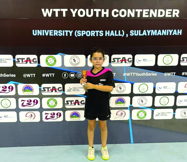 أحرزت اللبنانية بيرلا شيري (9 سنوات) المركز الثالث في بطولة السليمانية الدولية في العراق، بكرة الطاولة لفئة ما دون 11 عاماً، بعد خسارتها في نصف النهائي أمام الإيرانية المصنفة أولى.