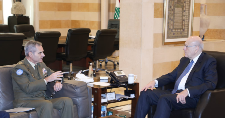 جدد رئيس الحكومة خلال الاجتماع "التعبير عن تقدير لبنان للجهود الشاقة التي تبذلها اليونيفيل في هذه المرحلة الصعبة، والتمسك بدورها وبقائها في الجنوب وبعدم المس بالمهام وقواعد العمل التي انيطت بها والذي تنفذه بالتعاون الوثيق مع الجيش".