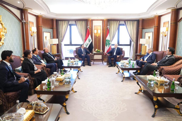 كما اجتمع رئيس الحكومة مع رئيس وزراء العراق محمد شياع السوداني، في حضور الوزيرين بوحبيب والحاج حسن والوفد العراقي المرافق. وقد عبّر الرئيس ميقاتي عن "شكر العراق لوقوفه الدائم الى جانب لبنان".