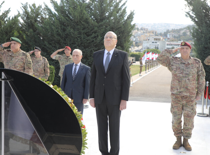 وكان رئيس الحكومة ، توجه لمناسبة الذكرى الواحدة والثمانين للاستقلال الى وزارة الدفاع الوطني صباح اليوم، حيث وضع اكليلا من الزهر على النصب التذكاري لشهداء الجيش .