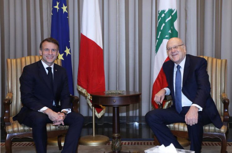 قال رئيس الحكومة نجيب ميقاتي بعد اجتماعه مع الرئيس الفرنسي إيمانويل ماكرون في المطار: "تشرفت هذا الصباح باستقبال الرئيس ايمانويل ماكرون في لبنان. وبعد الاستقبال تم اجتماع بيني وبين فخامته وتحدثنا عن الاوضاع الراهنة وضرورة المتابعة لدعم لبنان على الصعد كافة، اقتصاديا وفي مجال اعادة الاعمار. كما تحدثنا عن التحديات الراهنة، وكان الرئيس ماكرون متفهما جدا للاوضاع اللبنانية، واعدا بمتابعة العمل والدعم للحكومة الجديدة".