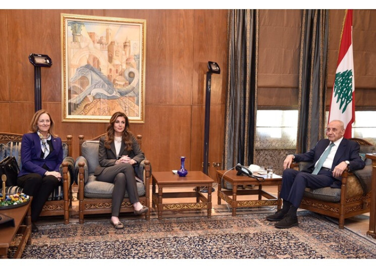 استقبل رئيس مجلس النواب نبيه بري في مقر الرئاسة الثانية في عين التينة، نائبة الموفد الاميركي للشرق الاوسط مورغان أورتاغوس والوفد المرافق بحضور السفيرة الاميركية ليزا جونسون والمستشار الإعلامي للرئيس بري علي حمدان، حيث جرى عرض للأوضاع العامة في لبنان لاسيما الوضع الميداني في الجنوب، "على ضوء إمعان اسرائيل جرياً على عادتها في خرق القرار الأممي 1701 وإتفاق وقف إطلاق النار عبر إستمرارها إحتلال اجزاء من الاراضي اللبنانية وحرقها ونسفها لعشرات المنازل وتجريف الأراضي الزراعية، إضافة لشن طيرانها الحربي والمسير عشرات الغارات الجوية مستهدفاً مناطق لبنانية عدة".