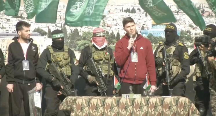 وبعيد وصولهم إلى المكان المخصص، صعد المحتجزون الثلاثة برفقة مقاتلي القسام وسرايا القدس على المنصة، حيث تمت مراسم التسليم.