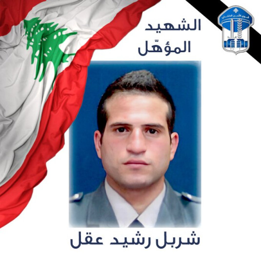 تنعي المديرية العامّة لقوى الأمن الداخلي المعاون أوّل شربل عقل الذي استشهد فجر تاريخ 8-3-2025 في محلّة عجلتون، نتيجة تبادل إطلاق نار مع عصابة سرقة مسلّحة، بحيث أسفر عنها مقتل (ز. ز. مواليد 1998، سوري) وهو أحد أفراد العصابة.