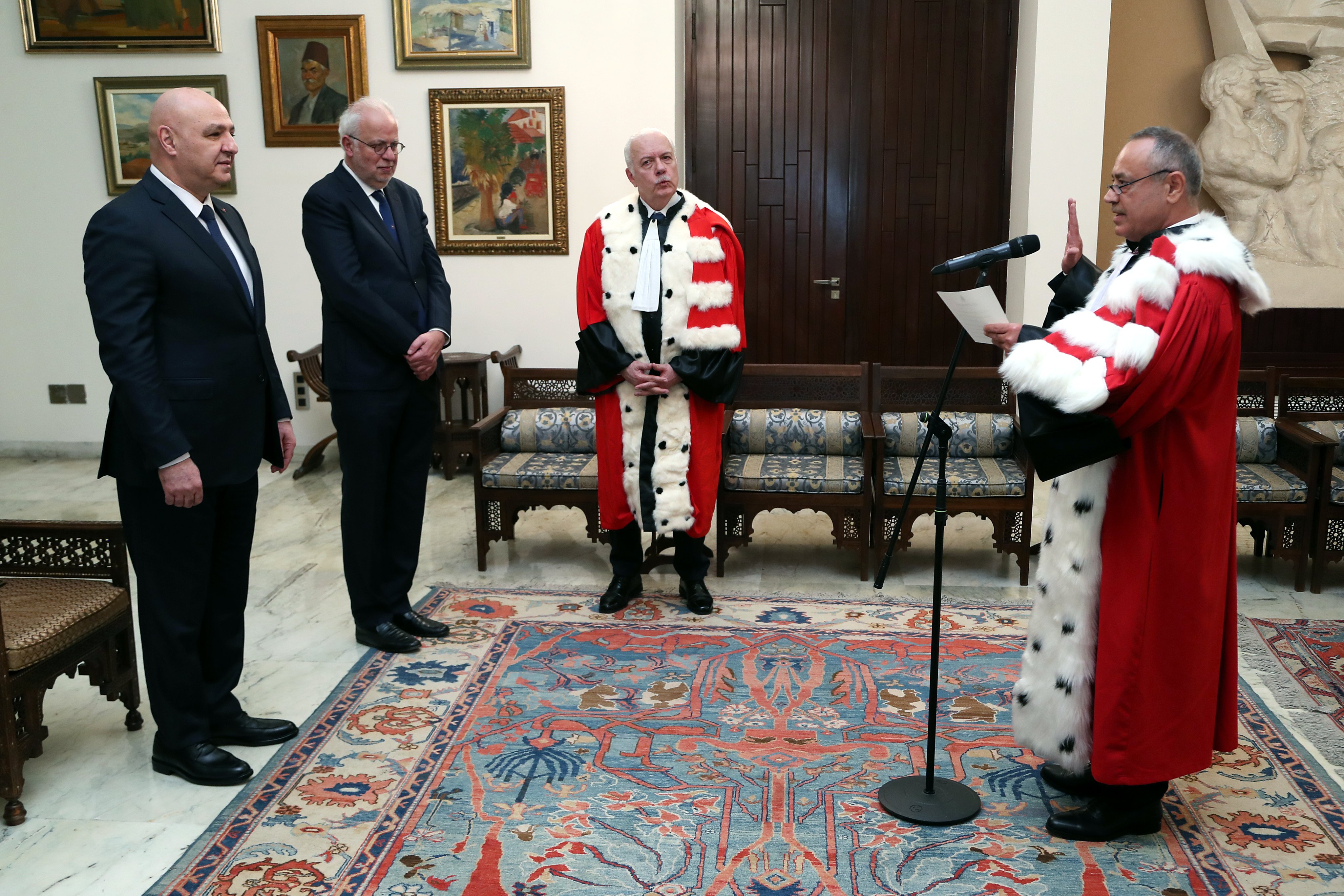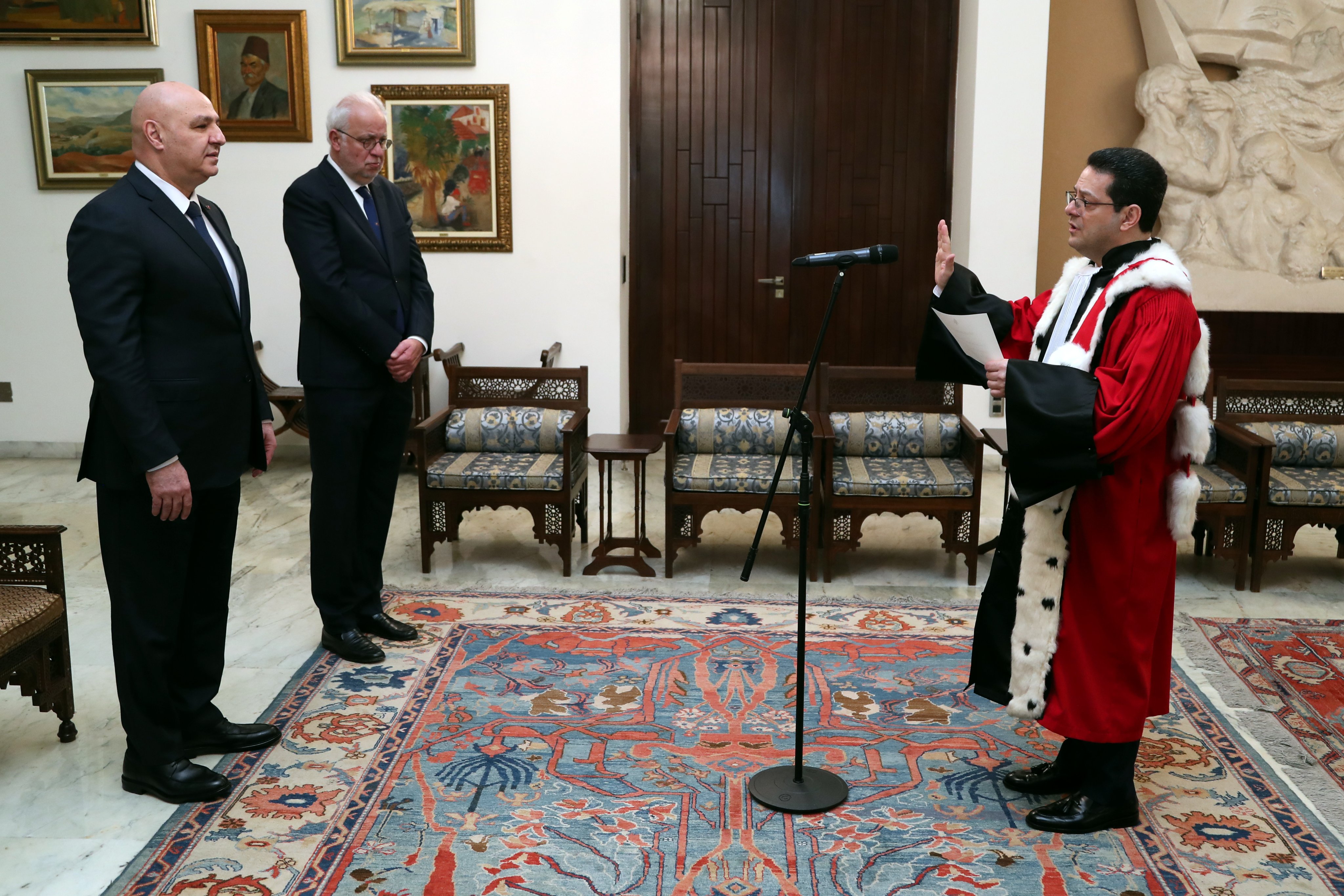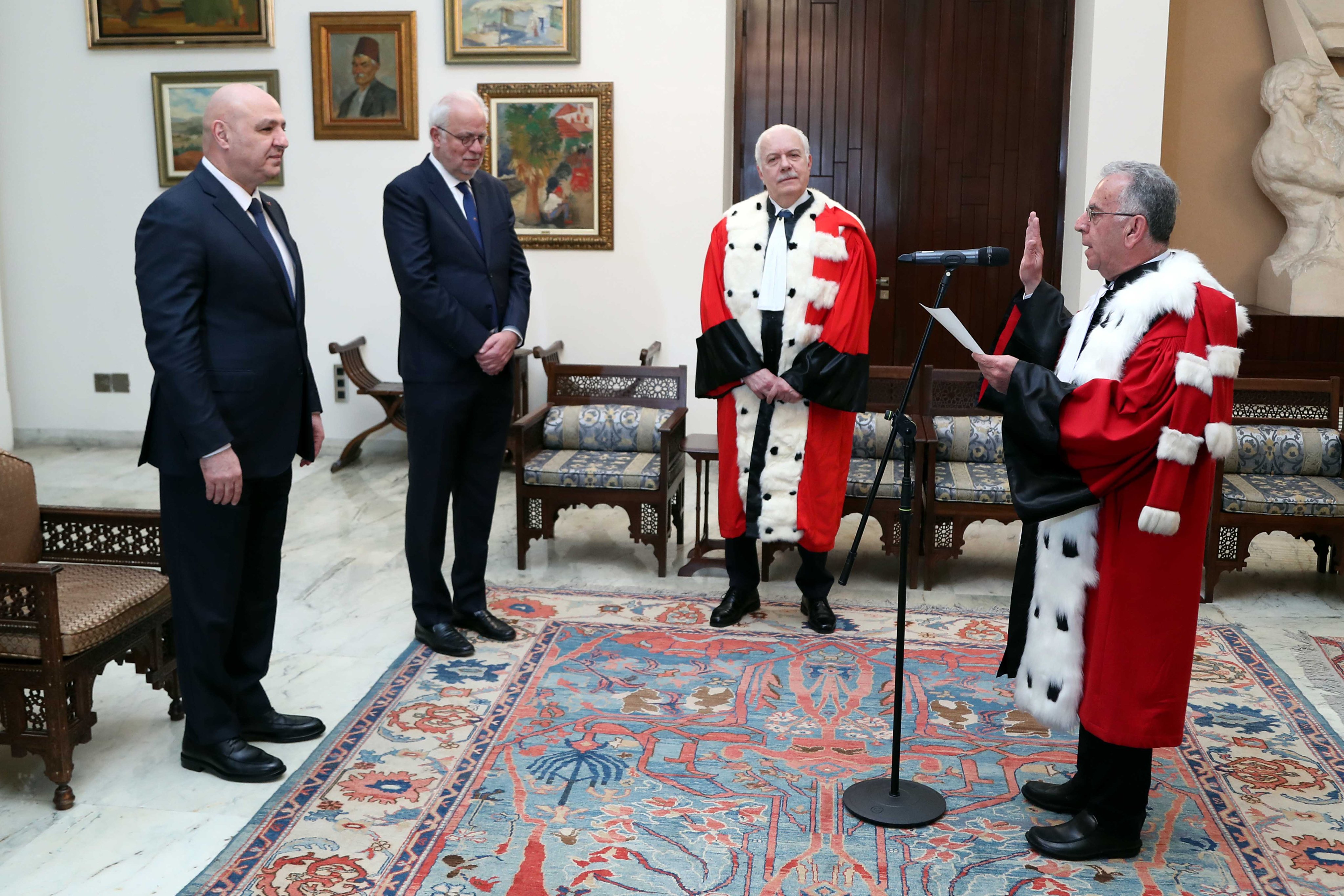 كما أقسم مدّعي عام التمييز، القاضي جمال الحجار، ورئيس هيئة التفتيش القضائي، القاضي أيمن عويدات، ورئيس مجلس شورى الدولة، القاضي يوسف الجميل، اليمين أمام الرئيس عون، وذلك بحضور وزير العدل، عادل نصار، ورئيس مجلس القضاء الأعلى، القاضي سهيل عبود.