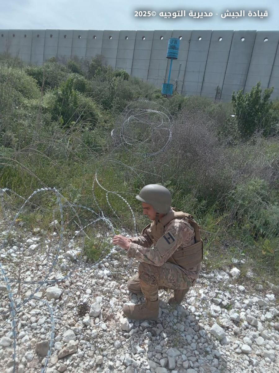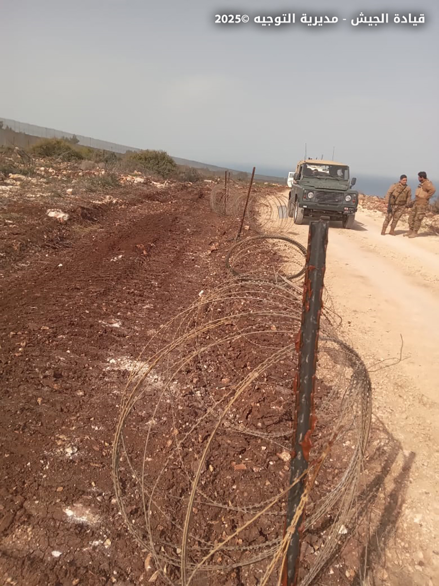 "في إطار متابعة الخروقات المستمرة من قبل العدو الإسرائيلي، عملت وحدة من الجيش في منطقتَي علما الشعب واللبونة - صور على إزالة عوائق هندسية كان العدو الإسرائيلي قد وضعها لإغلاق طريق داخل الأراضي اللبنانية، كما فككت عبوتَين استخدمهما العدو لتفخيخ هذه العوائق.