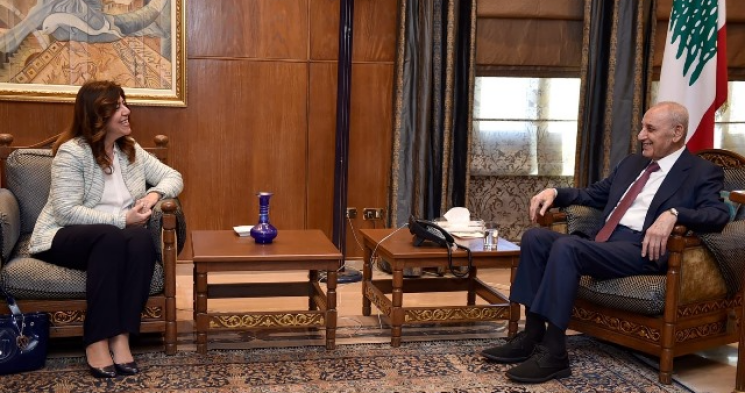 استقبل رئيس مجلس النواب نبيه بري وزيرة الشباب والرياضة نورا بايراقداريان، وبحث معها في الأوضاع العامة والمستجدات وشؤون متصلة بالقطاعات الشبابية والإتحادات والمنشآت الرياضية.