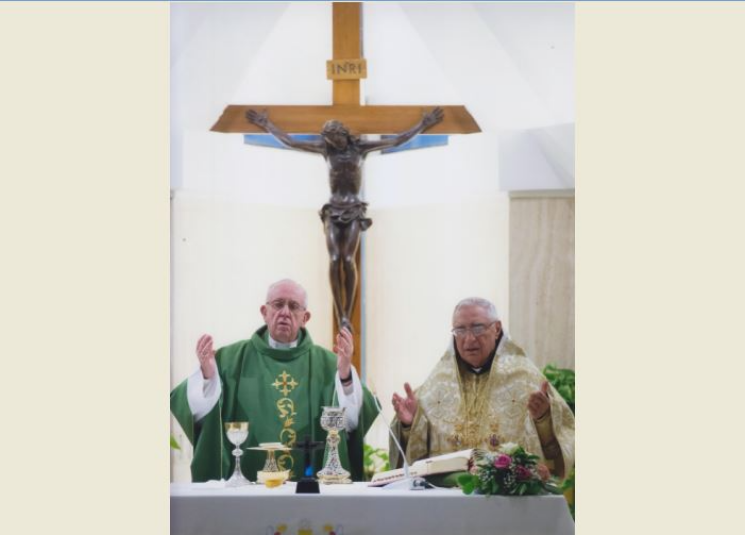 وختم: "اكرّر تعزيتي لكلّ واحد منكم وأرفع صلاتي معكم إلى الربّ القدير، سيّد الأحياء والأموات، منشدًا: "مع القدّيسين أرح أيّها المسيح، نفس عبدك البابا فرنسيس، حيث لا وجع ولا حزن ولا تنهّد بل حياة لا نهاية لها".