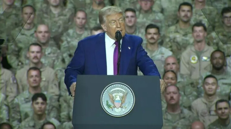 وأكد ترامب في كلمة ألقاها بالقاعدة، أن جيش بلاده هو الأقوى بالعالم قائلاً: "لدينا أقوى جيش في العالم"، لافتاً إلى أن بلاده خصصت ميزانية للجيش هي الأكبر على الإطلاق.