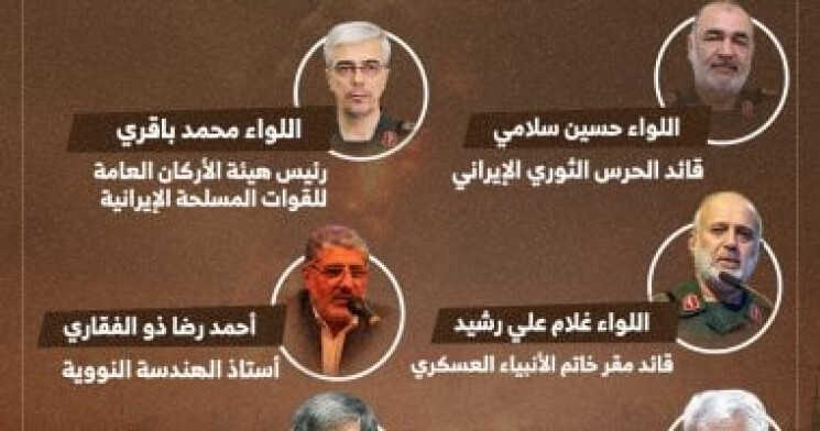 كشفت وسائل إعلام إيرانية وإسرائيلية عن مقتل عدد من القادة العسكريين والعلماء في الهجوم الذي نفذته إسرائيل على مواقع عدة في إيران فجر اليوم، وأكد المرشد الإيراني خامنئي أن "خلفاءهم وزملاءهم سيستأنفون مهامهم فورا".