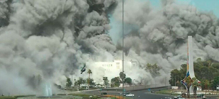 وأورد التلفزيون السوري الرسمي عبر تليغرام: "عدوانا لطيران الاحتلال الإسرائيلي قرب مبنى رئاسة الأركان في ساحة الأمويين بدمشق".